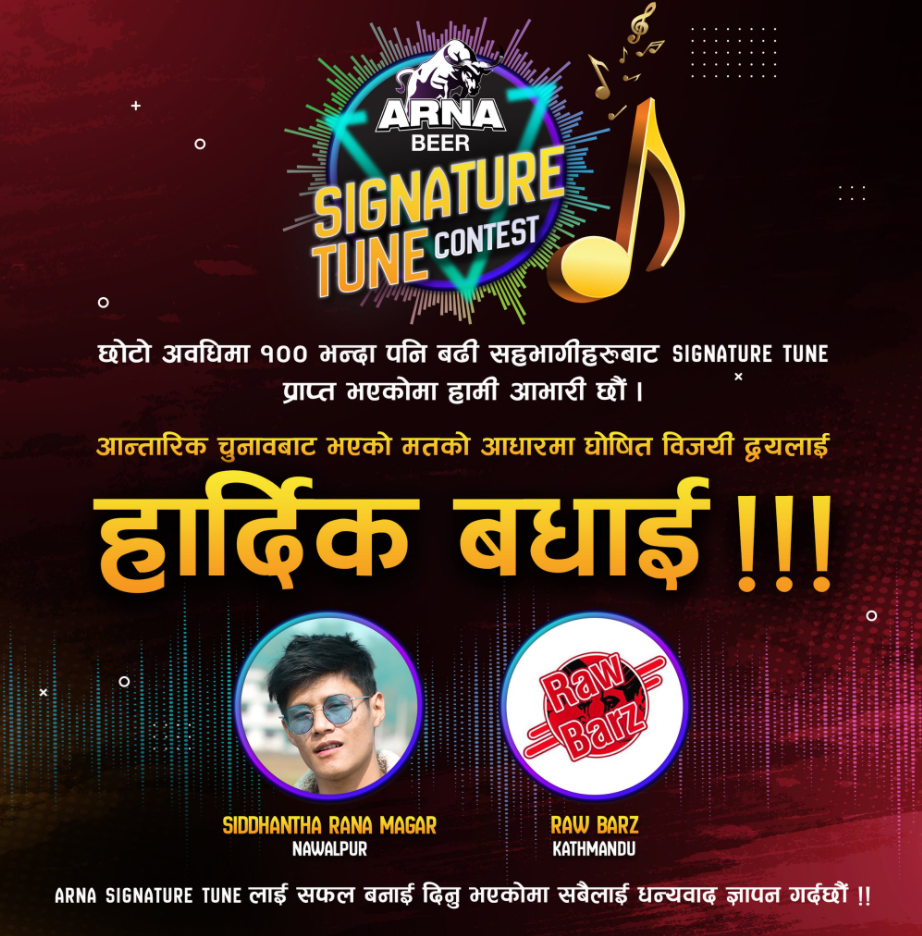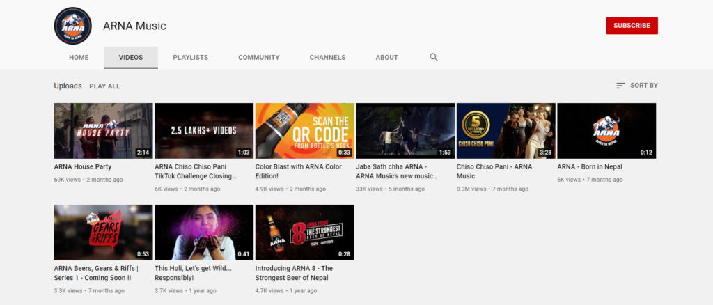 The Youtube Channel called “Arna Music” exists where they release their music videos implying ARNA Beer as the main context of their song. Their first music video was a sensation among youths despite being a beer promotional song. The song was also the winner of the “Signature Tune Contest”(winning prize 10 lakhs) which was later made a music video and stands at 4,967,935 views and counting. The song has easily registered the name “ARNA Beer” in many probable consumer’s minds.