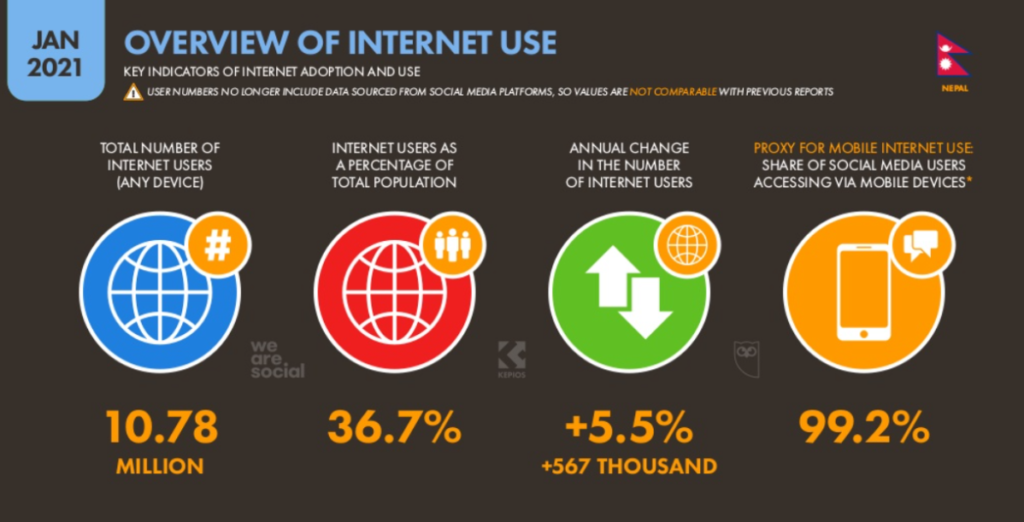 In the context of Nepal, the internet was already famous for entertainment and informational features but after the first and second lockdown, it became a necessity for acquiring services and earning money too. Those who were not operating through digital or telecommunication mediums for consumer communication had to adapt to it. The communication and transactions are handled through internet mediums, and services are provided either physically or digitally based on feasibility and safety.
